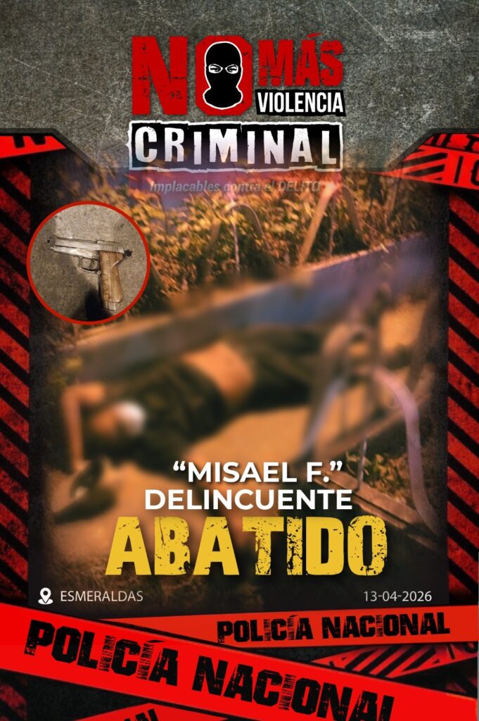 Delincuente abatido tras hecho violento y enfrentamiento armado en Esmeraldas