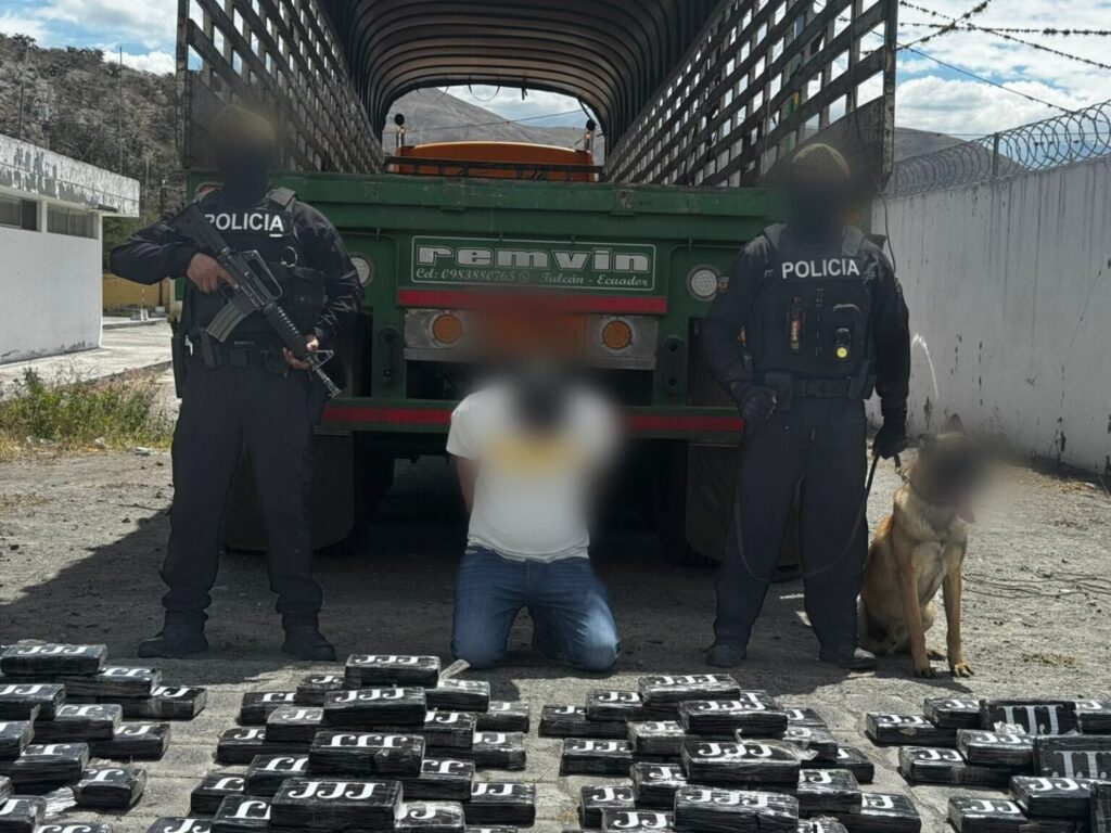 Este 01 de septiembre de 2025, la Policía Nacional del Ecuador, a través del Centro Regional de Adiestramiento Canino (CRAC), ejecutó un operativo en el Control Integrado de Mascarilla, provincia de Imbabura, donde se incautaron 650 kilogramos de clorhidrato de cocaína, distribuidos en 650 paquetes, que contaban con un distintivo y se encontraban camuflados en un compartimento de doble fondo, adaptado en la parte alta de la lona que recubría la plataforma de un tráiler.