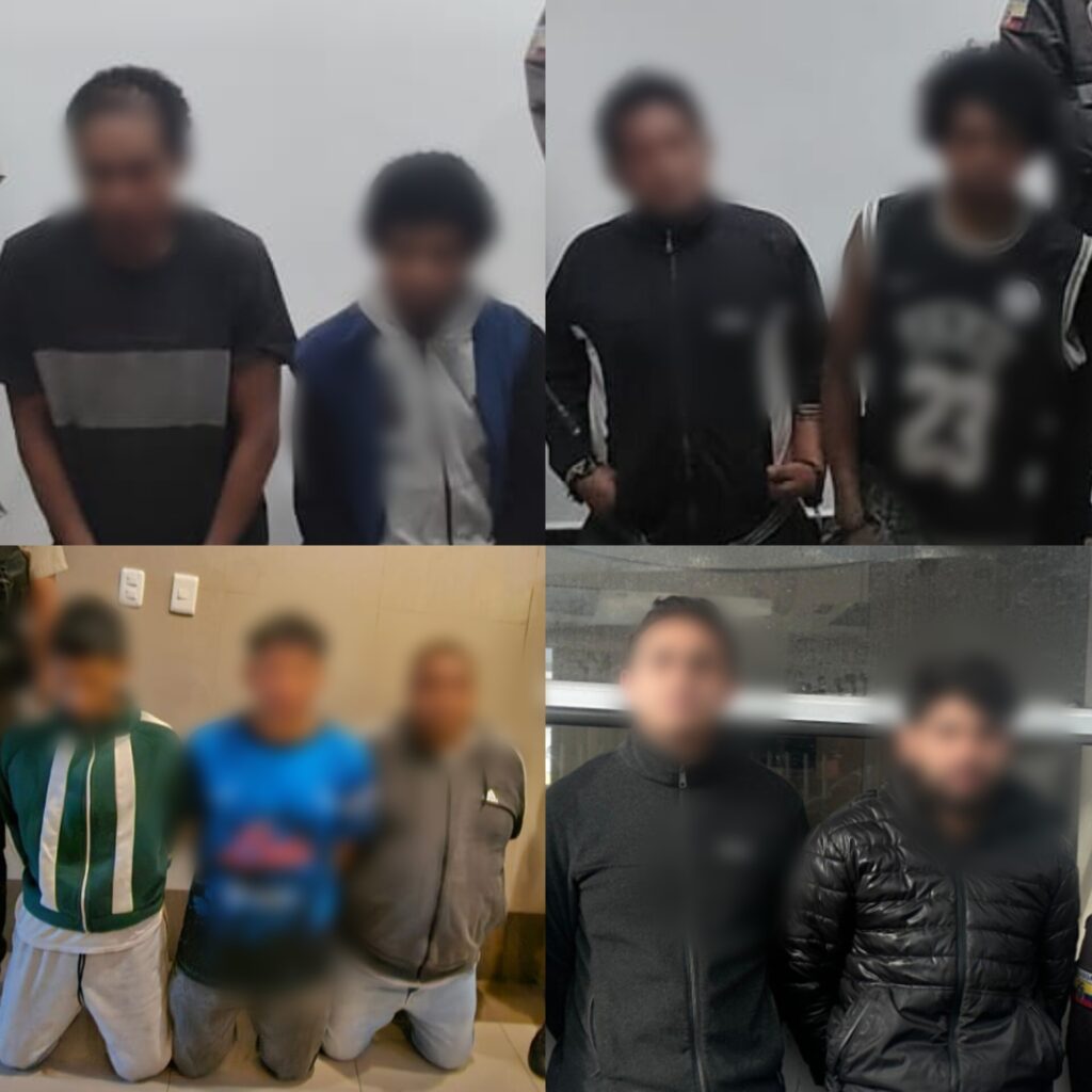 Durante las intervenciones, se aprehendió en flagrancia a: Luis Antonio B. B., Josué Israel C. M., David Gonzalo N. C.; Walter Alexi Q. G., Jair Alexander D. A., Fabián Esteban S. V., Luis Rigoberto L. G., Dennis Martín Z., Diego Fernando L. V., de nacionalidad ecuatoriana, a quienes se les encontró en posesión de:
