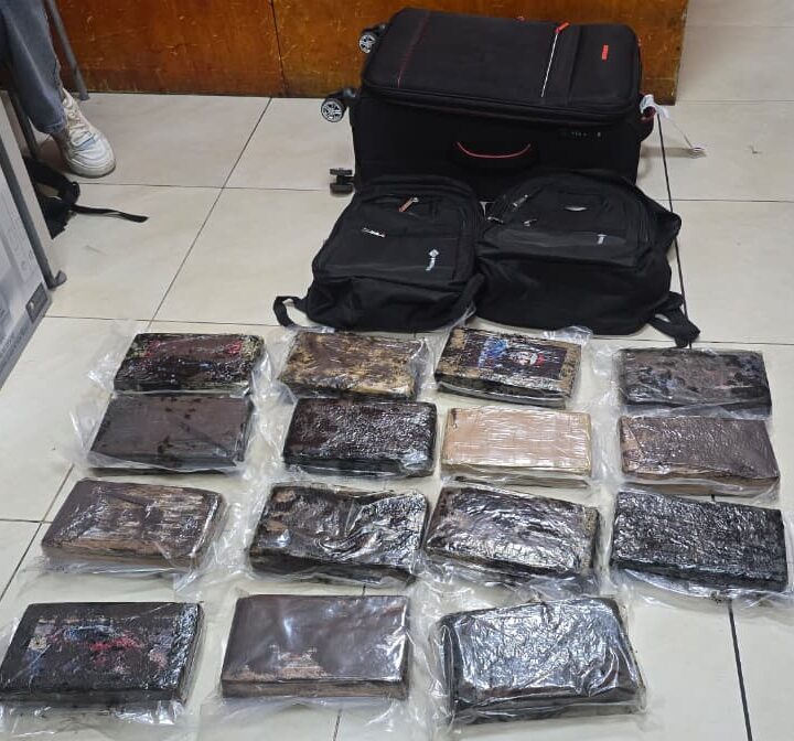 La acción fue desplegada por la Unidad Nacional de Investigación de Puerto y Aeropuerto (UIPA) en coordinación con la Unidad Nacional Canina (CRAC), mediante un oportuno proceso de información en el aeropuerto se halló una maleta abandonada.