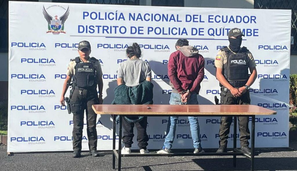 La Policía Nacional del Ecuador, a través del Distrito Quitumbe, aprehendió a dos personas por el delito de robo a personas con el uso de un arma blanca, la noche del 24 de septiembre de 2025, en el sector de San Martín, al sur de Quito.