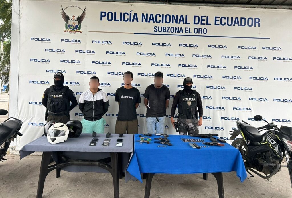 La Policía Nacional del Ecuador, a través de la Subzona El Oro, ejecutó un importante operativo la noche del viernes 03 de octubre de 2025 en el cantón Pasaje, provincia de El Oro, que permitió la aprehensión de cuatro ciudadanos, presuntamente implicados en el delito de asesinato y otras actividades delictivas.
