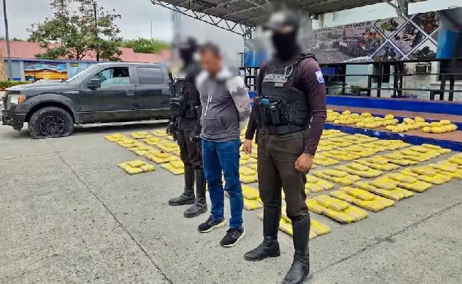 El automotor fue interceptado en el cruce de las avenidas Francisco de Orellana y José Luis Tamayo. En el registro del vehículo, los agentes encontraron 503 bloques envueltos en cinta adhesiva que contenían una sustancia verdosa.