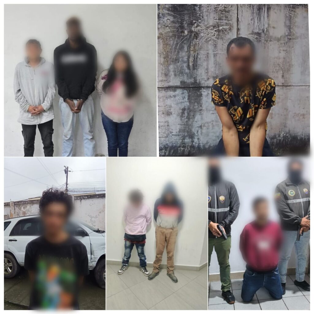 Las acciones policiales se desarrollaron con base en gestiones investigativas, vigilancias, seguimientos y la geo referenciación del delito, en diferentes sectores, en donde fueron aprehendidos en flagrancia: Edwin C.; Edison G., con antecedentes por: Robo (2008, 2009, 2012, 2014, 2015,2021, Tentativa de Asesinato (2010), Tentativa de violación (2013), Violación de domicilio (2014), Existencia del delito (2017), Asesinato y Hurto (2018), Rosa P., con antecedentes por: Receptación, Jacobo L., Erick V., con antecedentes por : Tráfico Ilícito de Sustancias Catalogadas Sujetas a Fiscalización, Marco M., Dillan V., y Novver J., a quienes se les encontró en poder de: