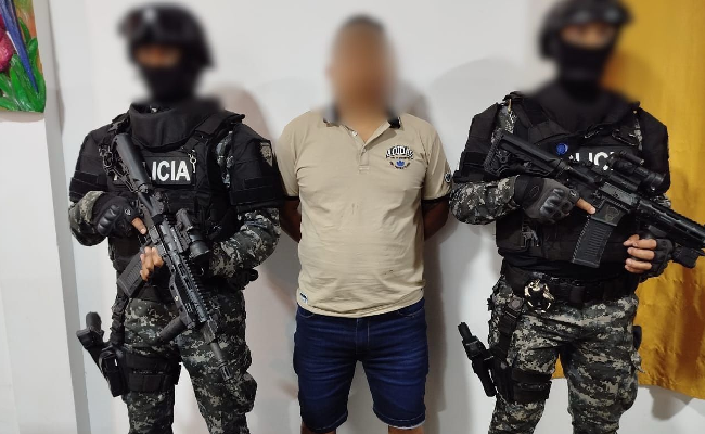 Según la exposición fiscal, el sospechoso fue aprehendido el 15 de marzo de 2025, en La Joya de los Sachas (Orellana). A través de información reservada, la Policía conoció que el grupo organizado “Los Choneros – Fatales”, dedicado a diversas actividades delictivas, operaba en esa provincia bajo el liderazgo de alias “Topo”.