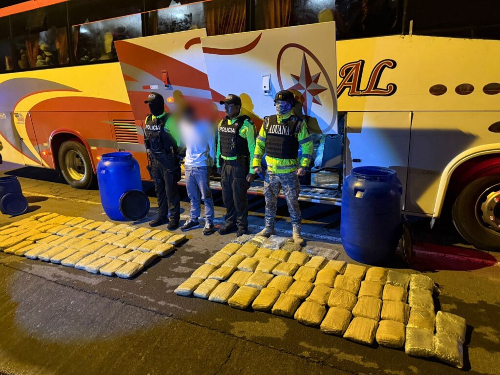 El procedimiento se desarrolló mientras los servidores policiales realizaban un patrullaje preventivo por el sector Redondel de Cajas y verificaron un vehículo tipo bus. De acuerdo con la versión del conductor y controlador, un ciudadano habría abordado la unidad en la terminal terrestre de Ibarra con destino a la ciudad de Manta quien indicó que debía transportar tres tanques de urea.
