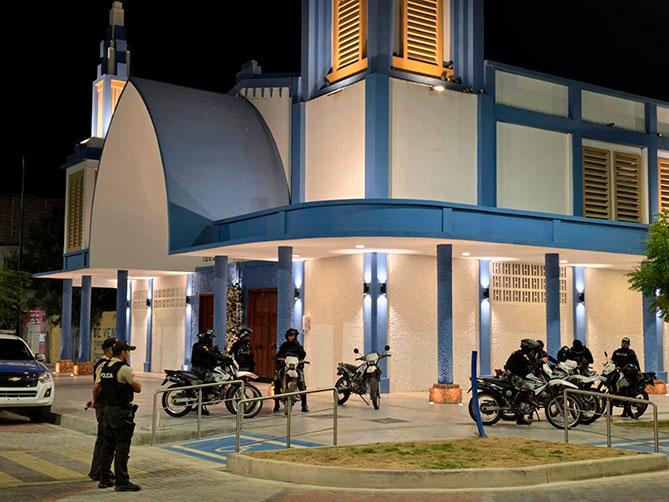 La misa que fue oficiada ayer en honor a la entrega de la restauración integral de la Iglesia Templo Faro de Puerto Bolívar se vio empañada por momentos de pánico que vivieron los asistentes a este acto, cuando en los exteriores se escuchó una balacera aproximadamente pasadas las 19:40.