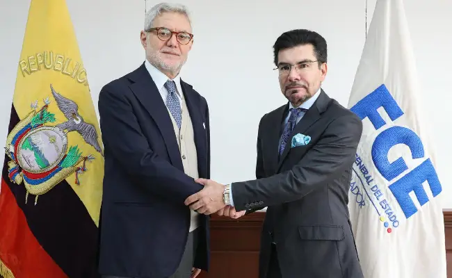 Además, la reunión contó con la presencia del Embajador de Italia en Ecuador, Giovanni Davoli, quien felicitó al Fiscal General (e) y señaló: “ponemos a su disposición nuestros equipos, la cooperación policial italiana y el trabajo de nuestros expertos. Apreciamos su compromiso y nos sumamos a esta lucha esencial para nuestras democracias. La delincuencia solo puede ser derrotada con trabajo conjunto”.