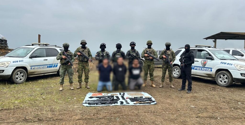 Mediante labores operativas y allanamiento a un inmueble ubicado en el cantón Ponce Enrique, servidores policiales capturaron a tres presuntos integrantes del Grupo Armado Organizado (GAO) “Los Lobos”, quienes utilizarían dicho domicilio para el almacenamiento de armas de fuego, municiones y explosivos.