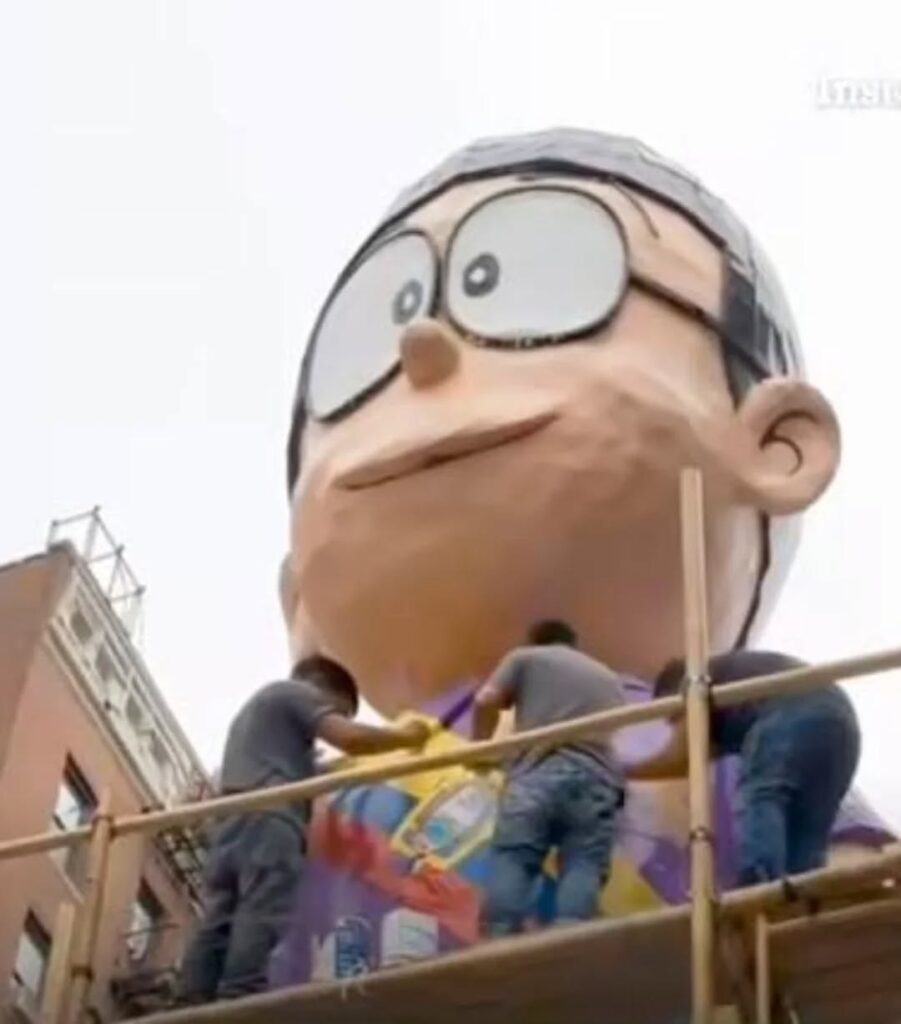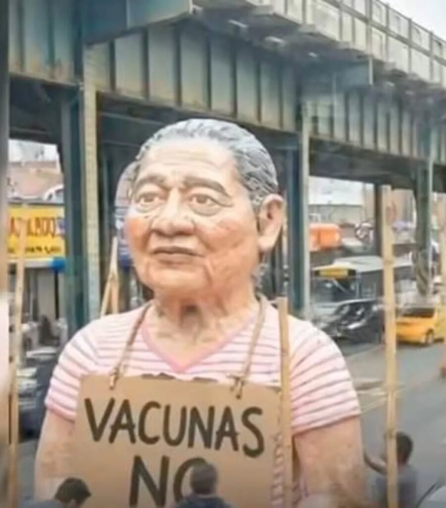 En varios puntos del sector se observaron figuras de gran tamaño, entre ellas personajes como Nobita, el peleador Michael Morales, el conocido “rostro económico”, La Mofle y la popular señora tiendera del meme “Vacunas no”, captando la atención tanto de transeúntes como de residentes latinos y turistas.