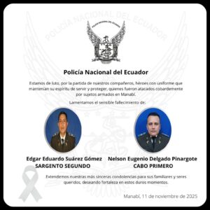 La Policía Nacional del Ecuador lamenta profundamente informar que la tarde de este martes, 11 de noviembre de 2025, los...