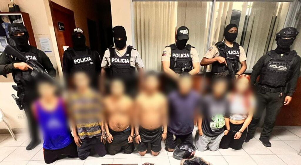 La Policía Nacional del Ecuador mediante labores de investigación ejecutadas en el cantón Quinindé, logró la aprehensión de siete sujetos entre ellos dos mujeres implicados en los delitos de tenencia ilegal de armas de fuego, robo y extorsión.
