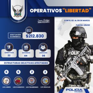 Con estos resultados la Policía Nacional del Ecuador reafirma su compromiso de servir y proteger con firmeza a nuestra comunidad, poniendo a órdenes de la justicia a personas que actúen al margen de la ley.