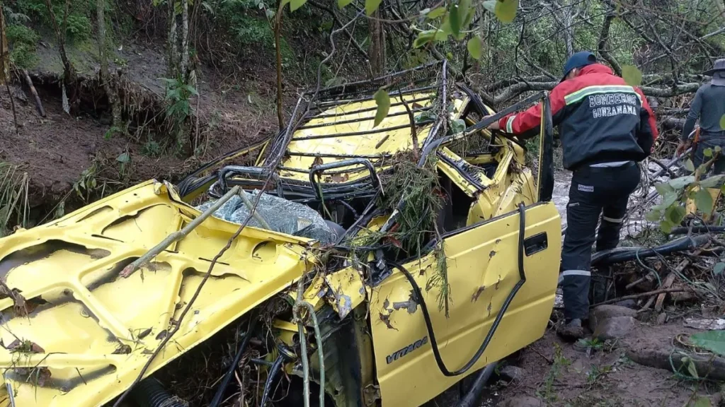 El automóvil quedó atrapado entre piedras y ramas. En imágenes compartidas por el Cuerpo de Bomberos de Gonzanamá se aprecia que quedó totalmente destruido.