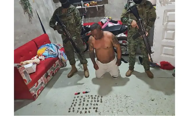 Babahoyo (Los Ríos), 24 de febrero de 2026.- La Fiscalía General del Estado inició un proceso penal contra Héctor M., alias “Chino”, como presunto autor de los delitos de tráfico ilícito de sustancias catalogadas sujetas a fiscalización y de tenencia de armas, municiones y explosivos prohibidos o no autorizados. El sospechoso fue aprehendido en una vivienda de Babahoyo, donde se encontraron varias dosis de droga y dos explosivos.
