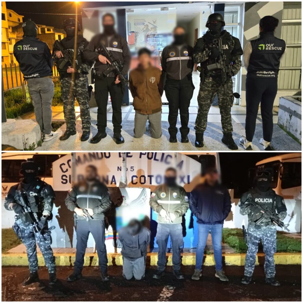 Como resultado de las diligencias operativas, en el sector de Guaytacama, provincia de Cotopaxi, fue aprehendido Danny A., mientras que, en el sector de La Argelia, provincia de Pichincha, se detuvo a Cristian M., quienes presuntamente estarían produciendo, almacenando y distribuyendo, a través de plataformas digitales, Material de Abuso Sexual Infantil (MASI).