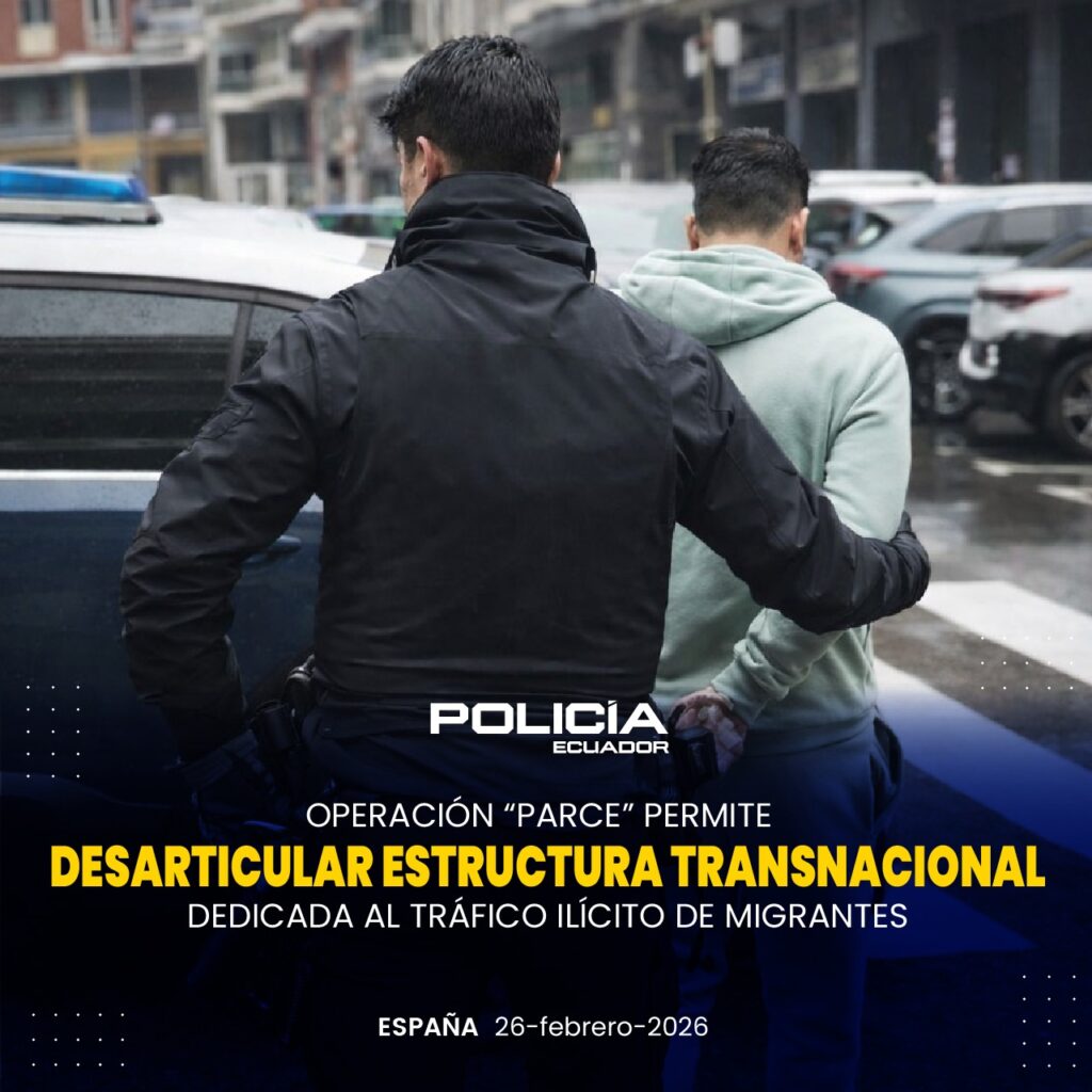 El 25 de febrero de 2026, la Policía Nacional del Ecuador, a través de Dirección Nacional de Investigación contra la violencia de Género, Mujer, Familia, Niñez y Adolescencia, Trata de Personas y Tráfico ilícito de Migrantes (DINAF) en coordinación con el Centro contra la Trata y el Tráfico de Migrantes de AMERIPOL CTT y Policía de España, se ejecutó el operativo “Parce”, que permitió la detención de dos presuntos implicados en el delito de tráfico ilícito de migrantes.