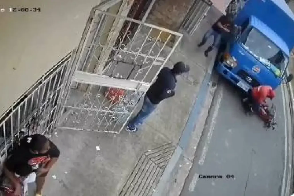 Una cámara de vigilancia captó el incidente. En las imágenes se observa a un trabajador subido en una motocicleta. De pronto, el camión pierde los frenos y baja la pendiente. En su afán por escapar, el hombre intenta avanzar en su moto, pero no lo logra. El pesado vehículo lo empuja y hace caer al piso para luego pasarle por encima. El hombre murió arrollado mientras el camión se estrelló contra una vivienda.