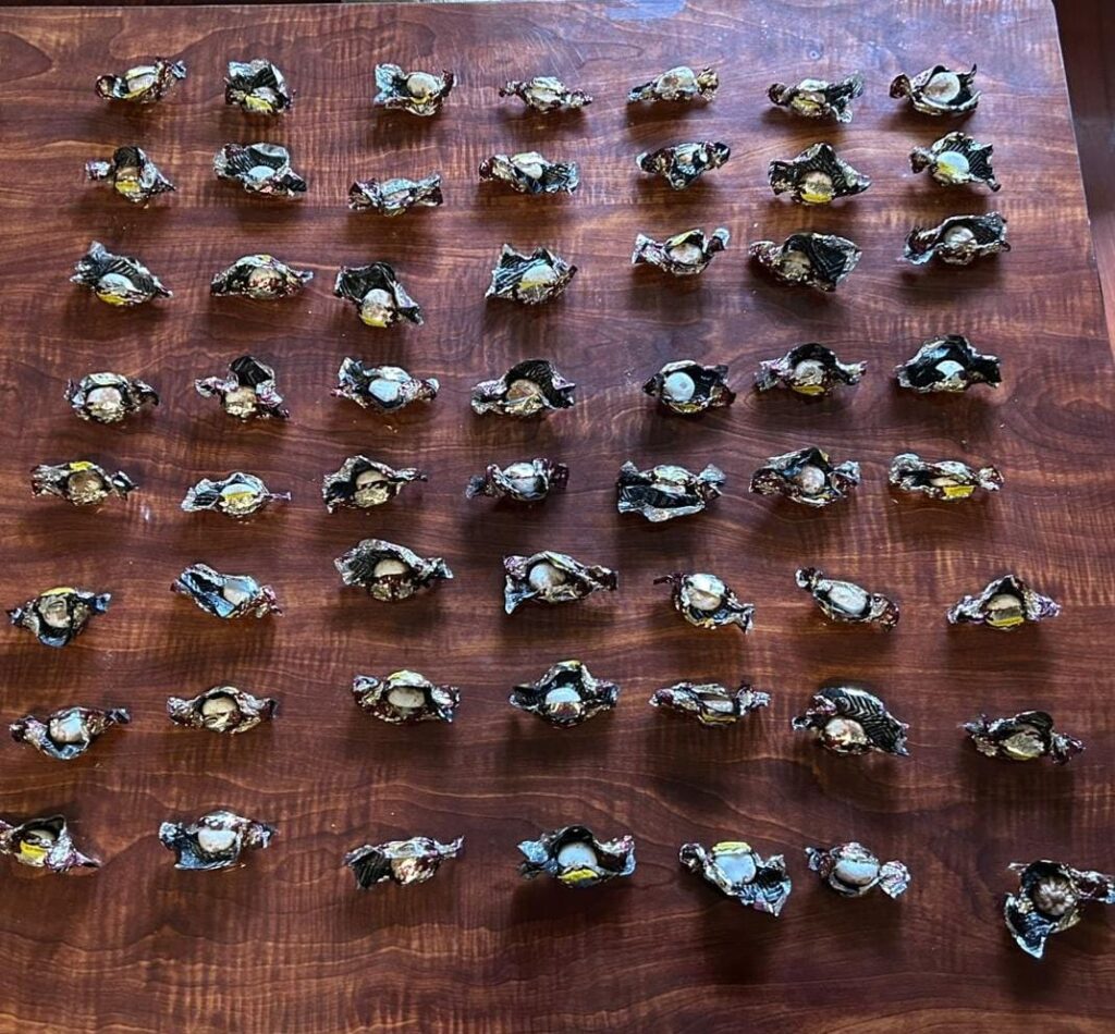 Las acciones desplegadas por los servidores policiales al norte de la ciudad de Cuenca, permitió identificar varios paquetes que presentaban alteraciones en sus pesos y dimensiones, por lo que realizaron una inspección y encontraron varias envolturas plásticas, que en su interior contenían una sustancia tipo polvo, la misma que al ser sometida a los reactivos químicos, dio positivo para clorhidrato de cocaína, con un peso de 1.044 gramos, equivalentes a 10.440 dosis.