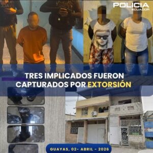 El 01 de abril de 2026, la Policía Nacional del Ecuador, a través de la Unidad Nacional Antisecuestros y Extorsión...