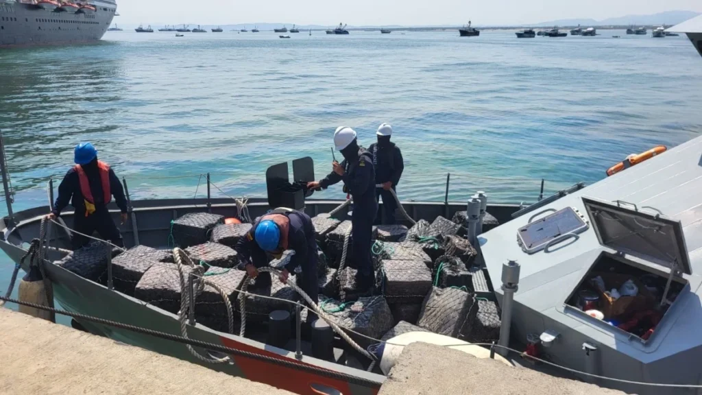 Días antes, el 24 de marzo, hubo 10 detenidos por transportar 760 kilos de cocaína. Fueron detectados en altamar al igual que otras seis personas que en cambio tenían 1,7 toneladas de cocaína. Datos de la Armada revelan que en altamar se han incautado 11.7 toneladas de droga en lo que va de 2026.