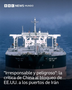China ha calificado el bloqueo naval estadounidense de los puertos iraníes como "irresponsable y peligroso". El Ministerio de Asuntos Exteriores...