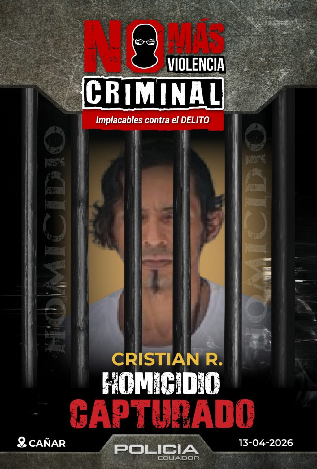 Es así que, el 13 de abril de 2026, mediante la ejecución de Operaciones Básicas de Inteligencia (OBI) y en el marco del Estado de Excepción vigente (Decreto Ejecutivo No. 353), localizaron al sospechoso en el sector del mercado Bellavista.