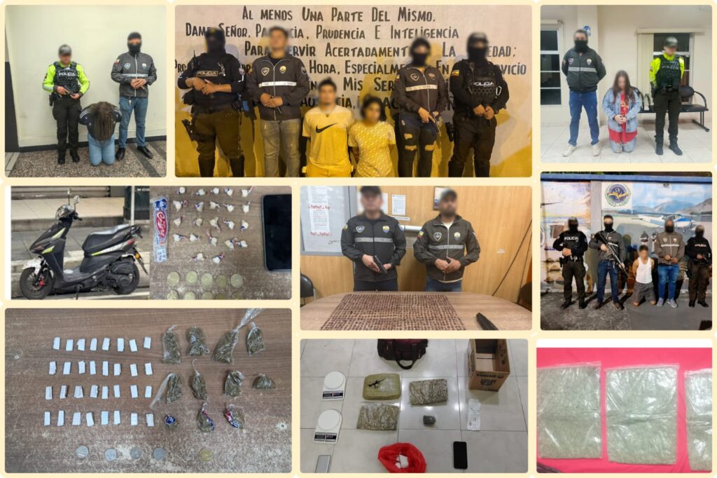 Durante las últimas horas, con base en la georreferenciación del delito y denuncias ciudadanas, la Policía Nacional del Ecuador a través de la Dirección Nacional de Investigación Antidrogas, llevó a cabo varias operaciones enfocadas a contrarrestar el tráfico de drogas destinadas para el consumo interno.