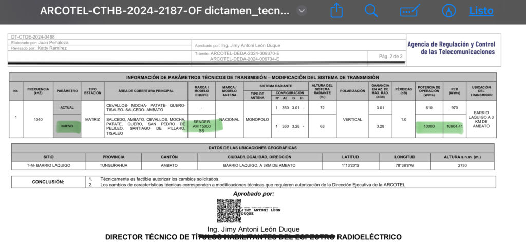 Radio Colosal 1040 AM en Ambato, Ecuador, ha instalado un nuevo transmisor de estado sólido Sender AM 15.000 SS.