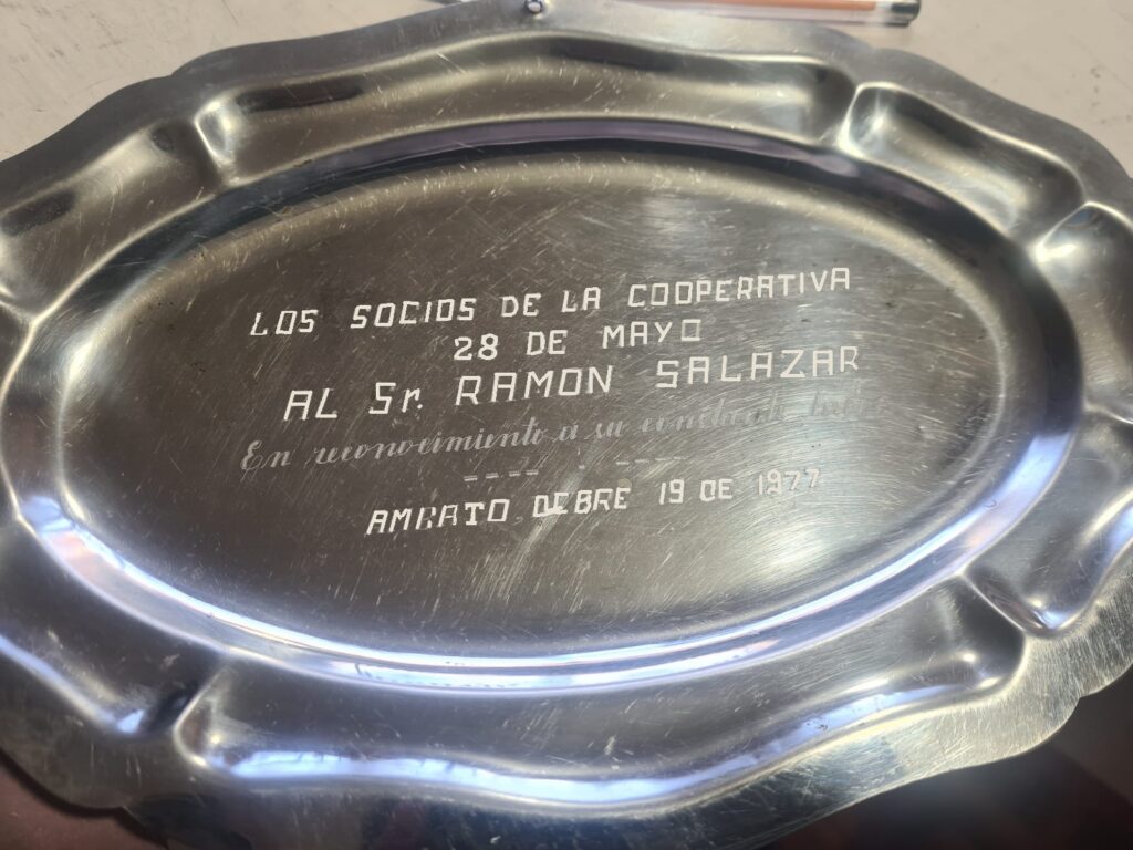 Su ciudad Ambato reconoció a Don Ramón Salazar con la mención Juan Benigno Vela a su labor periodística reconocimiento post-morten.